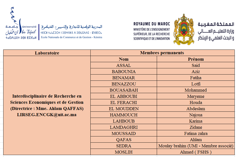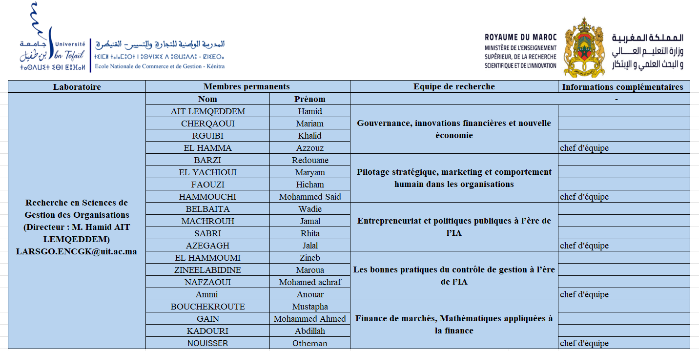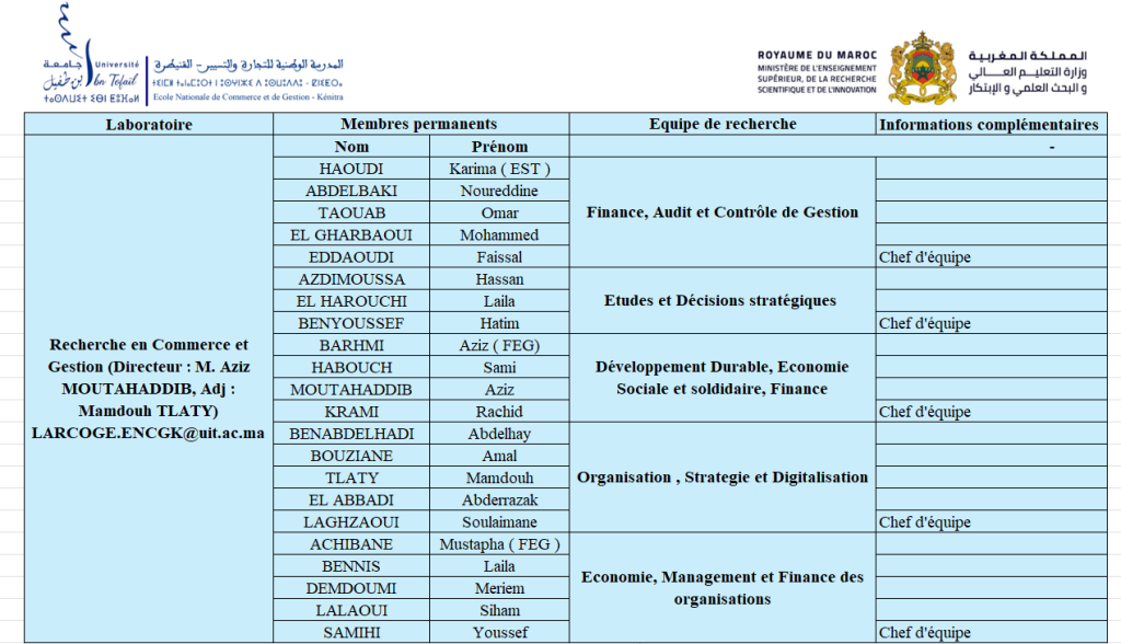Ainsi, les laboratoires et équipes de recherche participent activement au rayonnement scientifique de l’ENCG Kénitra et renforcent sa contribution au développement académique et socio-économique de la région de Rabat‑Salé‑Kénitra.