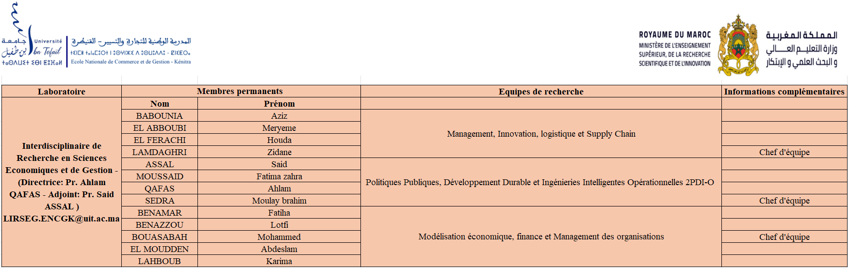 Ainsi, les laboratoires et équipes de recherche participent activement au rayonnement scientifique de l’ENCG Kénitra et renforcent sa contribution au développement académique et socio-économique de la région de Rabat‑Salé‑Kénitra.